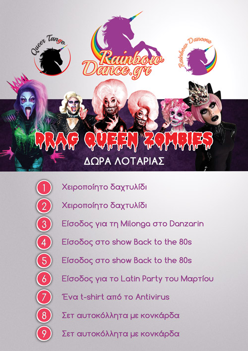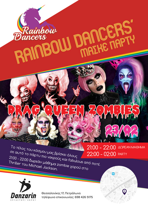 Το αποκριάτικο πάρτι των Rainbow Dancers είναι γεγονός. Αυτήν την φορά με μια θεματική σοκ! Είναι γεγονός ότι πολλές μεγάλες drag queen έχουν γεννηθεί μέσα σε αποκριάτικα πάρτι. Στην δικιά μας περίπτωση λοιπόν πολλές θα γεννηθούν νεκρές.