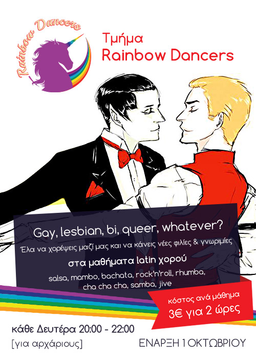 Την Δευτέρα 1 Οκτωβρίου ξεκινούν τα μαθήματα στο Latin τμήμα μας. Για όσους δεν ξέρουν η ομάδα μας λειτουργεί εδώ και τρία χρόνια με μηνιαία party και ετήσιες εμφανίσεις σε πολλά Lgbtqi+ event όπως τα φεστιβάλ υπερηφάνειας .